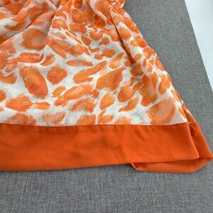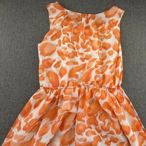 ELLE Sundress Medium Orange & White Lined Sleeveless Scoop Neck Belt Tie include