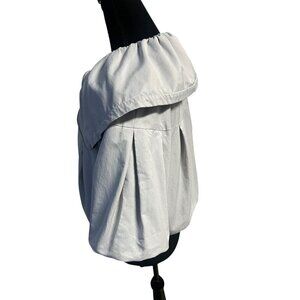 This cropped jacket offers a stylish and modern design with its puffy sleeves and functional zipper. The lightweight fabric makes it ideal for layering, while the elastic neckline adds a touch of comfort and versatility.