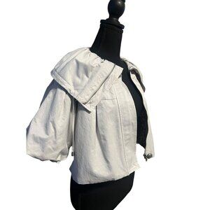 ELLE White Cropped Jacket With Puffy Sleeves & Zipper OFFICE ATTIRE WORKATTIRE