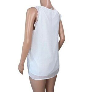 ELLE Women SZ L White Sleeveless Blouse Pleated Front-Tie Neck- Lined-Casual