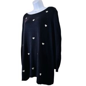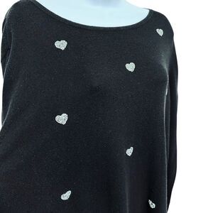 ELLE Womens Black Hearts Knit Sweater Size XXL Valentines Day Cozy, with sparkly silver hearts.