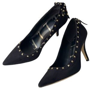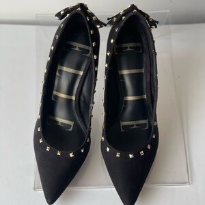 ELLE Women's Black Suede Gold Studded Stiletto Pumps Heels with Bow, Sz 8M