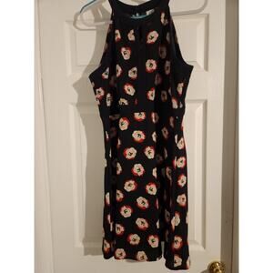 ELLE Women’s Salsa Floral A-Line Dress Black W/Red White Flowers Size 16