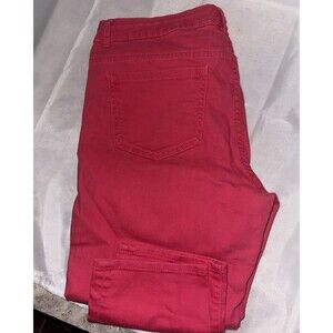 ELLE Women's Solid Bright Pink Mid-Rise Skinny Denim Jeans Pants Size 10