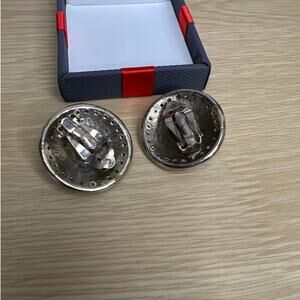 ELLEN DESIGNS Black Enamel & Rhinestone Clip-on Earrings Vintage