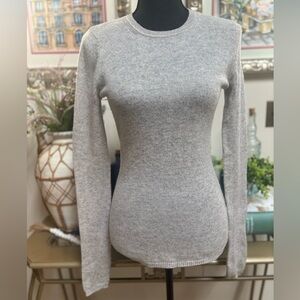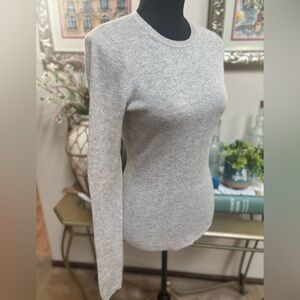Cozy , classic gray knit cashmere sweater . Very soft, ribbed knit neck, hemline & cuffs. Quality stitching as seen in pics. This beautiful sweater is in great condition. Measurements 17” ptp, 26” length