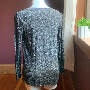 ELLEN TRACY Black Gray Abstract Print Knit Top S
