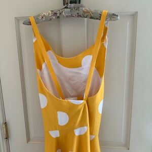 ELLEN TRACY CROSS BACK SUNDRESS-YELLOW POLKA DOTS WITH WHITE BUTTONS-Size 12