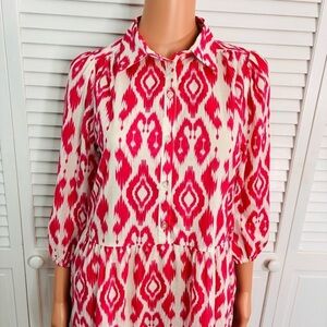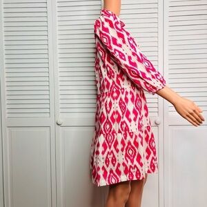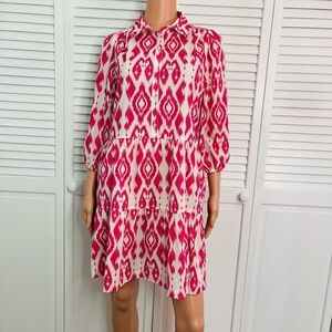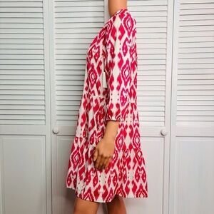 ELLEN TRACY Fuschia Ikat Print Puff Sleeve Tiered Mini Dress Size XS