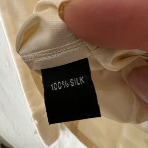 ELLEN TRACY LADYS 100% SILK BLOUSE SIZE 14. VERY POSH! ๐. IN GREAT TO EXCELLENT CONDITION, WILL NEED CUFF LINKS. A BEAUTIFUL COLOR CHAMPAGNE A BUT HAVE.