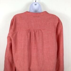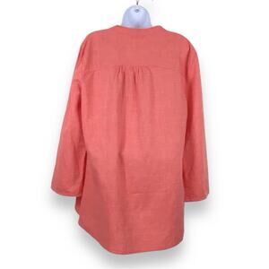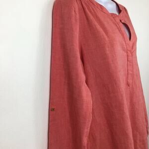 ELLEN TRACY LINEN Split Neck 3/4 Length Sleeve Coral Tunic size L