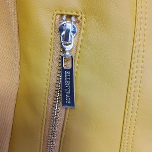 Ellen Tracy Jacket in Mustard Yellow. Two front gold zipper pockets.The sides and inside of the arms have matching color knit fabric that allows for a lot of stretch to accommodate different clothing underneath or for a more perfect fit! Versatility is key for this great Jacket to add for to leggins to a nice dress, skirt, jeans!