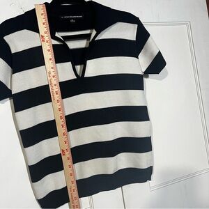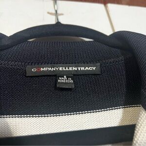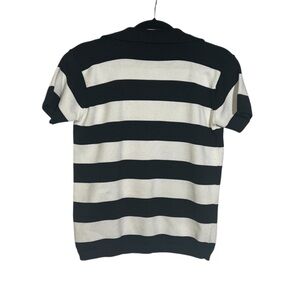ELLEN TRACY Open Neck Polo Striped Short Sleeve Navy and White Size Small