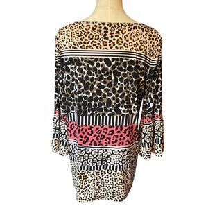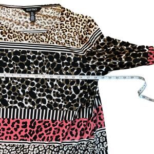 ELLEN TRACY PULLOVER BLOUSE MULTICOLOR LEOPARD PRINT 3/4 RUFFLE SLEEVE