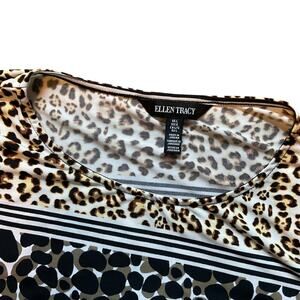 ELLEN TRACY PULLOVER BLOUSE MULTICOLOR LEOPARD PRINT 3/4 RUFFLE SLEEVE