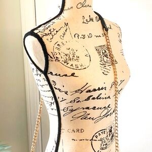 Perfect for your everyday essential like your smartphone, keys, cosmetics in black and gold colors with chain strap.