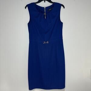 ELLEN TRACY Royal Blue Sleeveless Gold Trim Zipper Dress - Size 10