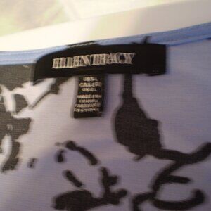 ELLEN TRACY SZ L BLUE/BLACK V NECK FAUX TWIST FRONT BLOUSE
