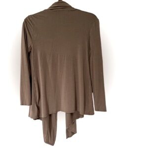 👚🏢 ELLEN TRACY Tan Cascading Shrug Cardigan | Petite Small Lightweight Knit