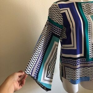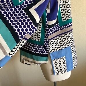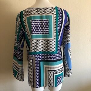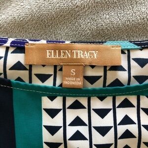 ELLEN TEACY 3/4 sleeves top size small hi-lo hem with fun print fabric relax fit