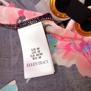 ELLEN TRACY Women’s Black Floral Drape Neck Blouse Top M Bow Detail, Stretch