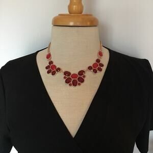 ELLEN TRACY gold tone red accent necklace set