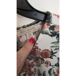 ELLEN WEAVER Blouse WOMENS SIZE 1X Sleeveless Round Neck Floral Summer Resort