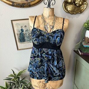 ELLE Paisley Print Colorful Cami Tank Blouse Bustier Style Size M Smocked Back