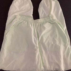 This vintage ELLESSE is a rare classic outfit from 80’s made in Italy in white and light avocado green. Pants have a downstrig waist with clinched ankles. Pants and jacket have a lining. Both pieces are in great condition.