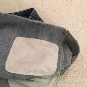 Super cute denim skirt with “distressed” areas. One distressed areas is frayed with sequins behind the gray, very cute😍. Fringe bottom. SIZE 2. Beautiful condition, maybe worn once, well cared for.