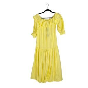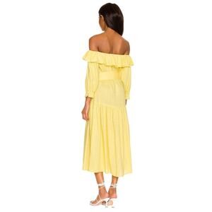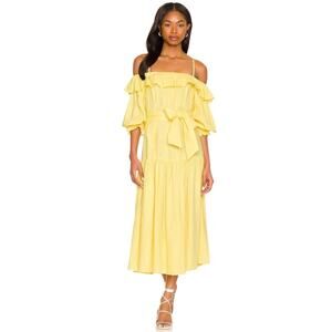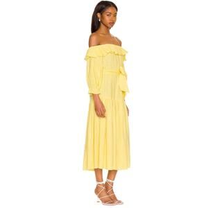 ELLIATT Beatrice Off Shoulder Ruffled tiered Midi Dress in Lemon