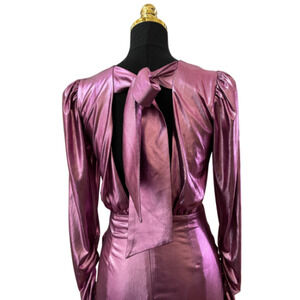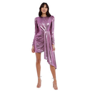 ELLIATT Dress Purple Metallic Ruched Puff Shoulder Cutout Back Mini Dress SZ XS