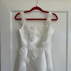 I wore this once for a few hours! The dress is in great condition and it is like new. No stains. Little string pull as shown in picture. The straps were taken in about 1 inch*
