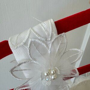 Floral decal accents with faux pearl and bead center
