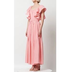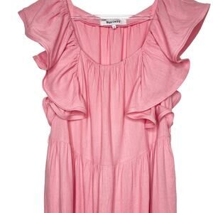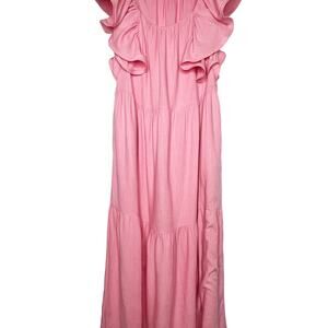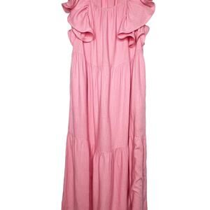 ELLIATT Eloise Maxi Dress Ruffle-Trim Scoop Neck Tiered Linen Blend Pink Size M