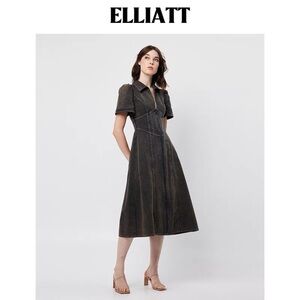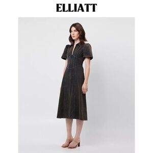 ELLIATT Matisse Denim Short Sleeve Midi Dress Black Size S NWT