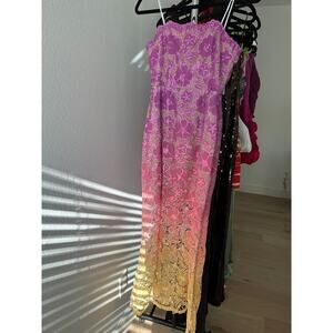 Neckline to shortest hem measures approx 27.5" and to longest hem approx 47.5" in length