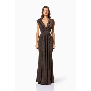 ELLIATT Nalani Bodycon Fitted Maxi Dress Black & Gold Cocktail party Size S NWT