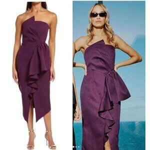 ELLIATT Reception Cascade Ruffle Strapless Cocktail Dress in Royal Purple Small