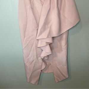 Mid-weight crepe fabric with draped detail and raw cut hem
