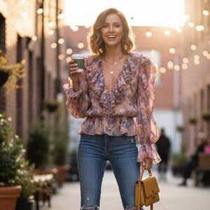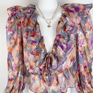 Experience elegance with our Reign Top. This cropped top features a v neck with a delicate ruffled design, adding a touch of sophistication. The long sleeves are adorned with elastic on the wrists for a comfortable fit. Made with silky feel fabric, this top will elevate any outfit