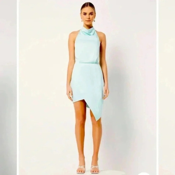 ELLIATT Revolve Camo Mini Dress Seafoam High Neck Asymmetrical size Large