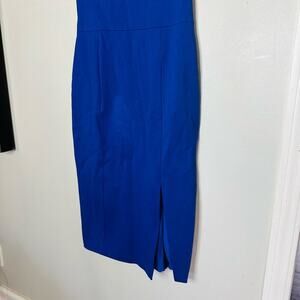 ELLIATT Women's Blue Olivia Cobalt Sheath Front Slit Midi Dress in size Large sounds like a beautiful and elegant piece! Likely made from a high-quality fabric like polyester or a blend, but the exact material may vary depending on the specific season and year the dress was released.
