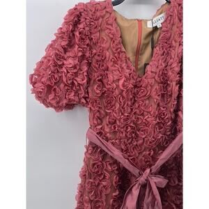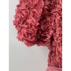ELLIATT Women’s Pink V-Neck Puff Short Sleeve Bloom Adoration Embroidered Floral Mesh Mini Dress SZ S