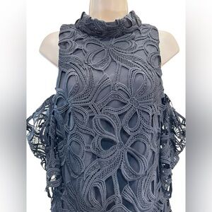 ELLIATT “the sight” black lace midi Black cold shoulder dress with lace and internal mesh with a hidden back zipper and a back slit. It’s on the heavier side. In new condition.