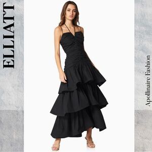 ELLIATT ASPEN TIERED RUFFLED MAXI DRESS IN BLACK SIZE MEDIUM NWT