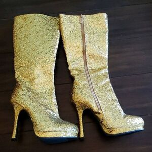 ELLIE 421-ZARA WOMEN 4" Gold Knee High Boot With Glitter