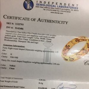 Diamonds # 48 ctw 1.55 color G clarity VS1=VS2 SAPPHIRES # 36 CTW 2.9 YELLOW CLEAN TOTAL GEM WT 4.45 CTW. GOLD WT 51.2 G apprGG GIA NEW NO TAG