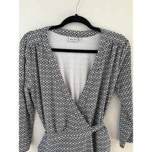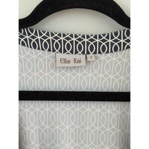 ELLIE KAI Women’s 2 Wrap Dress Black/Blue White V-Neck 3/4 Sleeve Knee Length