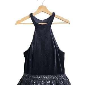 ELLIE WILDE MON CHERI EW118075 Black Goth Prom Velvet Halter Beaded Skirt Dress